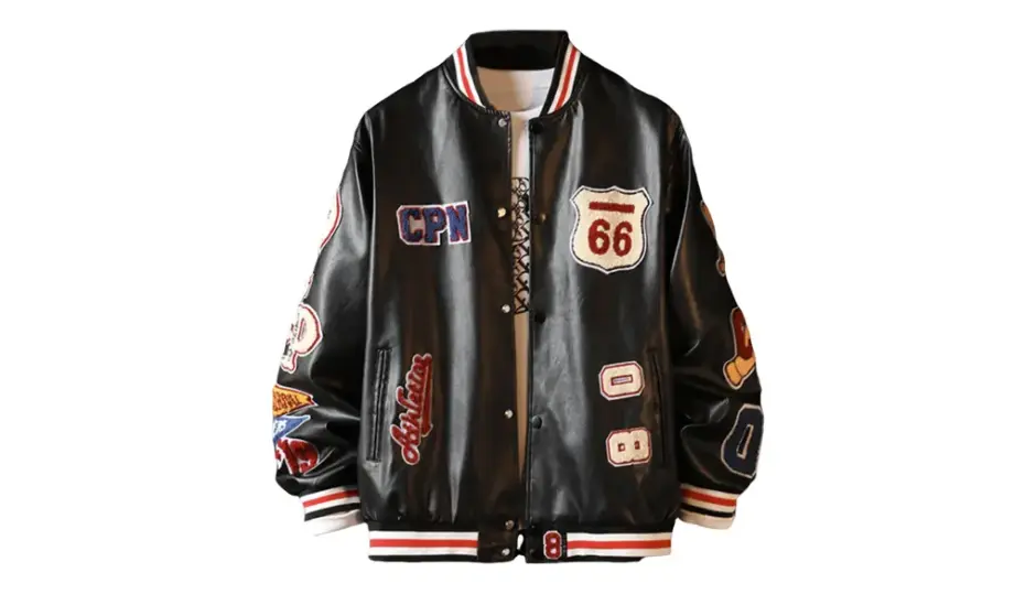 ストリートの遊び心と大人の落ち着き、その両方を兼ね備えた万能ブルゾン。 フェイクレザーの艶感とカラフルなワッペンが、着る人の個性を自然に引き立ててくれます。