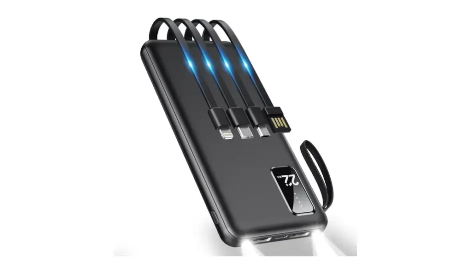 「ケーブル忘れた…」そんな経験、ありませんか? ArisakuならUSB-C・Lightning・Micro-USBなど4本のケーブルを本体に内蔵。しかも最大5台まで同時充電OK。