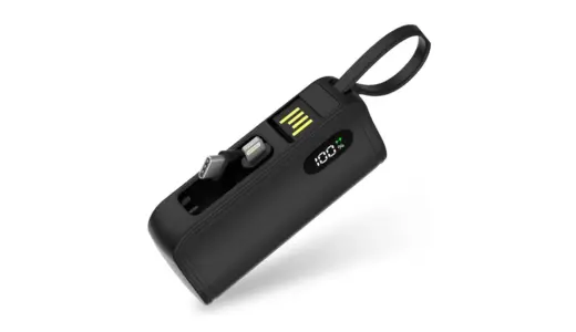 このEcoFlow RAPIDなら、巻き取り式USB-Cケーブル(67cm) と ストラップ兼USB-Cケーブル(26cm) が本体に内蔵。さらにUSB-Cポート2基も搭載されていて、最大4台を同時充電できます。