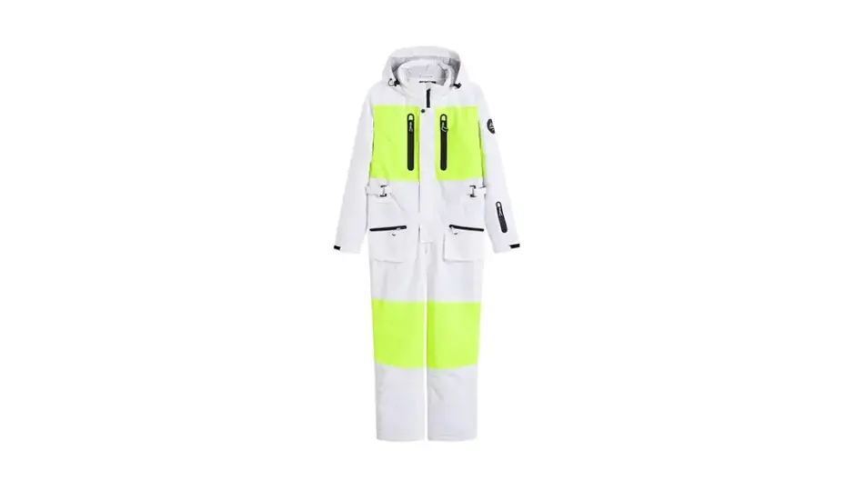 上下が一体化したワンピースタイプのデザインは、保温性能を飛躍的に向上させます。 風の侵入を防ぎ、雪の中でも体温を逃がさないのが特徴。