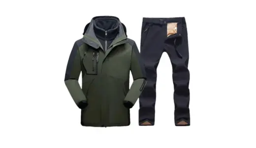 このスーツは、100%ポリエステル素材で作られた2点セット(ジャケット+パンツ)。 フリースライニングを採用し、内側から暖かさをしっかりキープします。