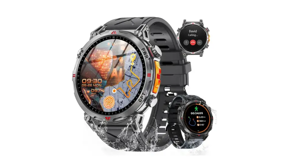 1.6インチのAMOLEDスクリーンは発色が鮮やかで、屋外でも見やすいのが特長。 そして本体は軍用規格の耐衝撃設計+3ATM防水。雨の日や水回りの作業中でも気にせず使え、アウトドアでも頼れる存在です。