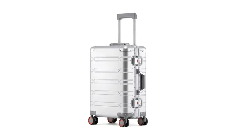 このスーツケースの主役は、やっぱりアルミマグネシウム合金のボディ。 指先で触れるとひんやりしていて、軽さの中にしっかりした安心感がある素材感が伝わります。