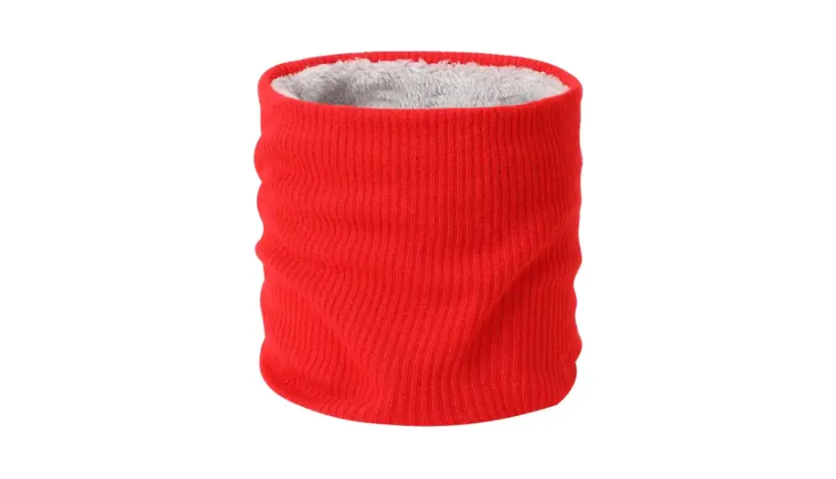 このネックウォーマー、見た目以上に本格派です。 外側は高密度リブ編み(アクリル82%+ナイロン18%)で風をブロック。 内側にはポリエステル100%の極柔ボア裏地を採用し、保温性をぐっと高めています。