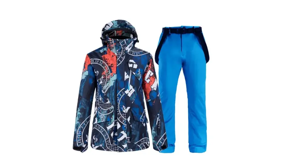 商品名:Wygwlg メンズ ツーピース スキースーツ セット サイズ展開:XXL(ブルー) 素材構成:ポリエステル+コットン 主な特徴: ・防水/防風仕様 ・マイナス30℃耐寒性能 ・カラフルな数字柄デザイン ・着脱可能フード&サスペンダー ・高通気構造で長時間快適